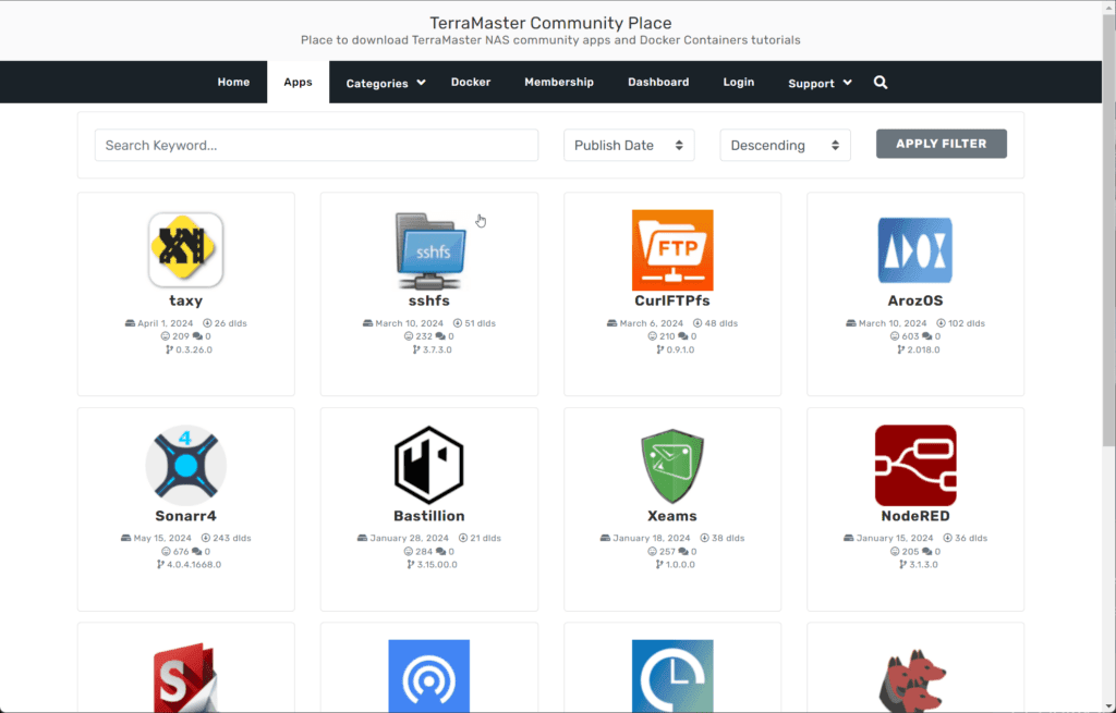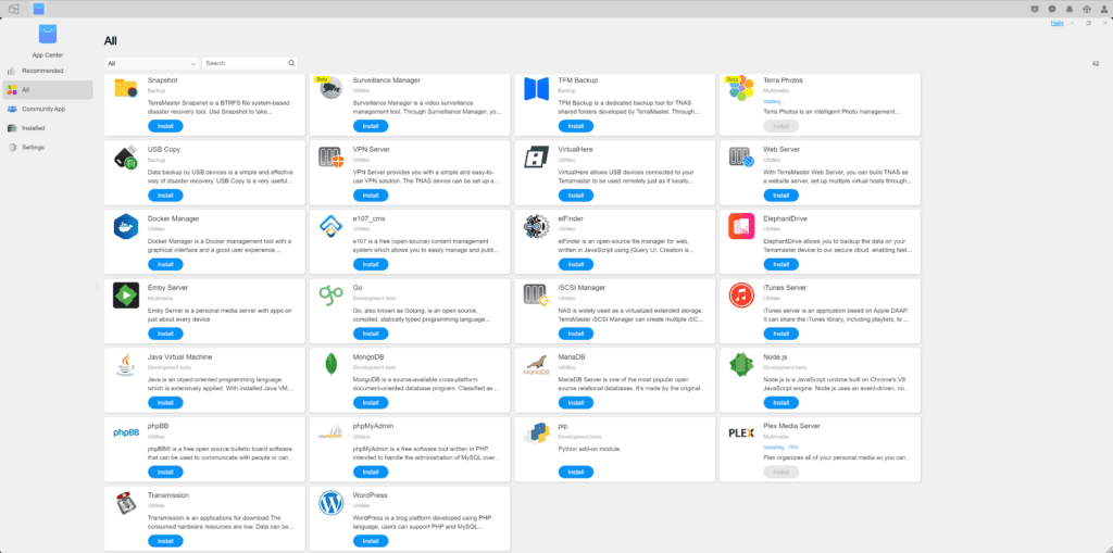 TerraMaster also has a section for community apps, which expands the available apps. I was hoping this would work a bit like the community apps available on Unraid, but sadly not.