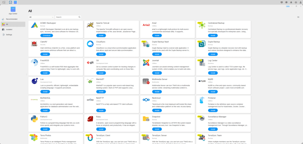 When I reviewed the TerraMaster F4-421, there were 88 apps available to download. It appears that some of these are not present on TOS 5. There are now just 55 apps available to install. A quick glance and there appears to be Headphones and Lazy Librarian missing.