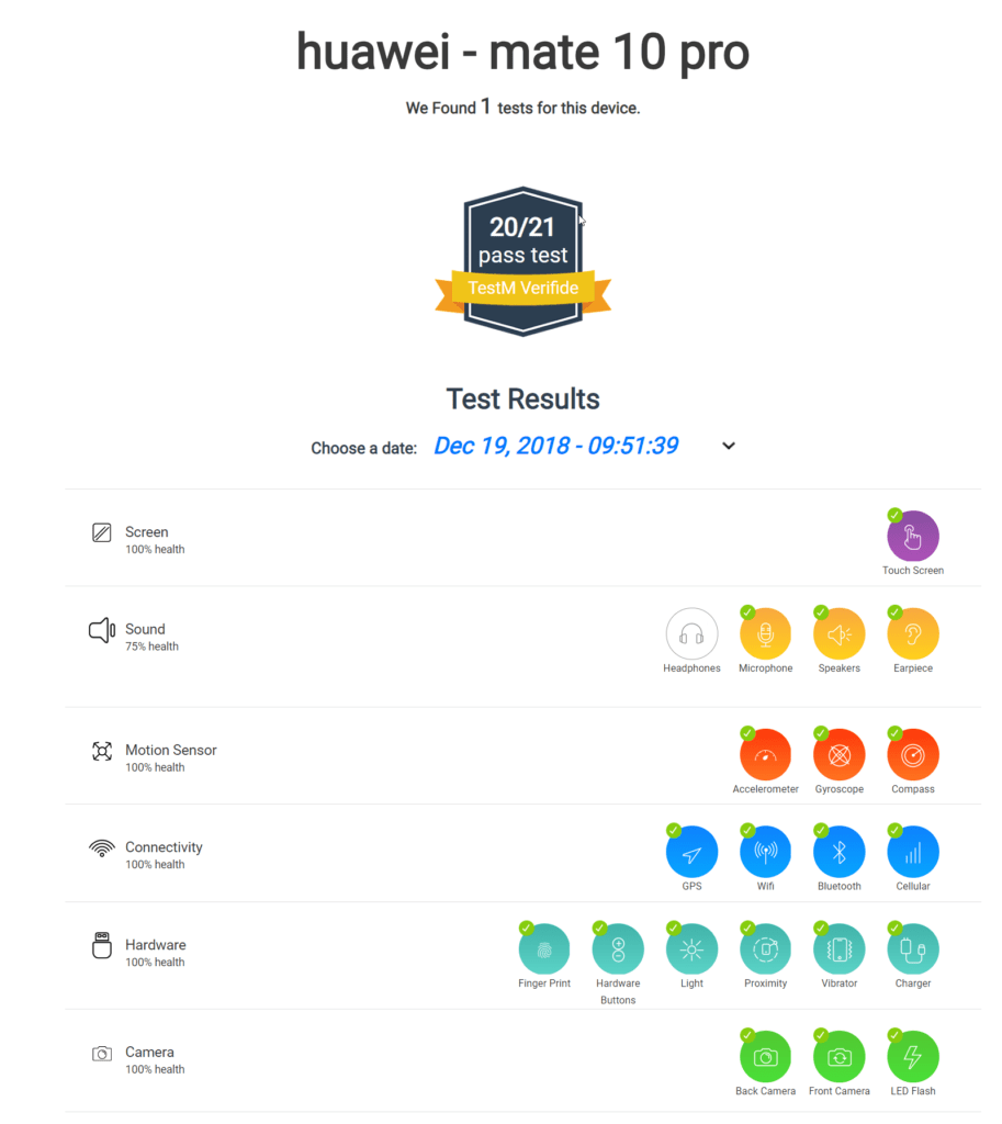Once you have completed all the tests you can create a report which you can share to a buyer to give them peace of mind about the phone. Or if you are a buyer, you can use it as evidence that there is something wrong with the phone, rather than having to go through the painful situation where a seller makes you check various things in an attempt to get out of a return.