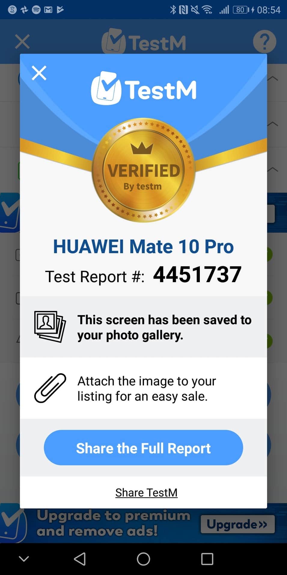 Furthermore, as a seller, you can save a photo of the report and use this as part of the listing for eBay or whatever service you are using to sell the phone.