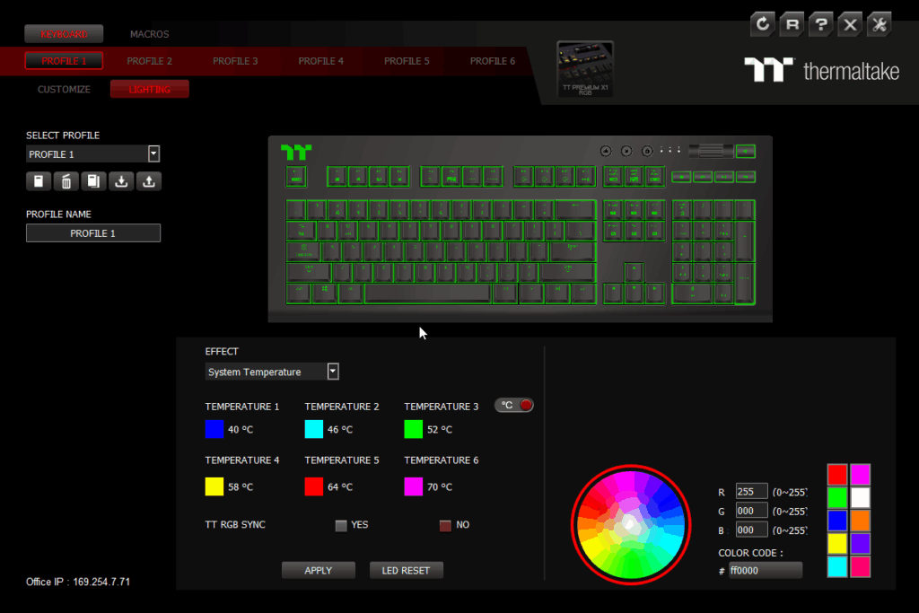 The software has an extensive level of settings to tweak to get your keyboard working and looking to your liking. However, I think Thermaltake need to hire some new graphic designers as both the X1 RGB software this keyboard uses and the TT RGB plus software used by the fan hubs looks dated. Some of the UI is just poor as the main colours used for the UI is black, red and dark grey, and it can be a little difficult to read.