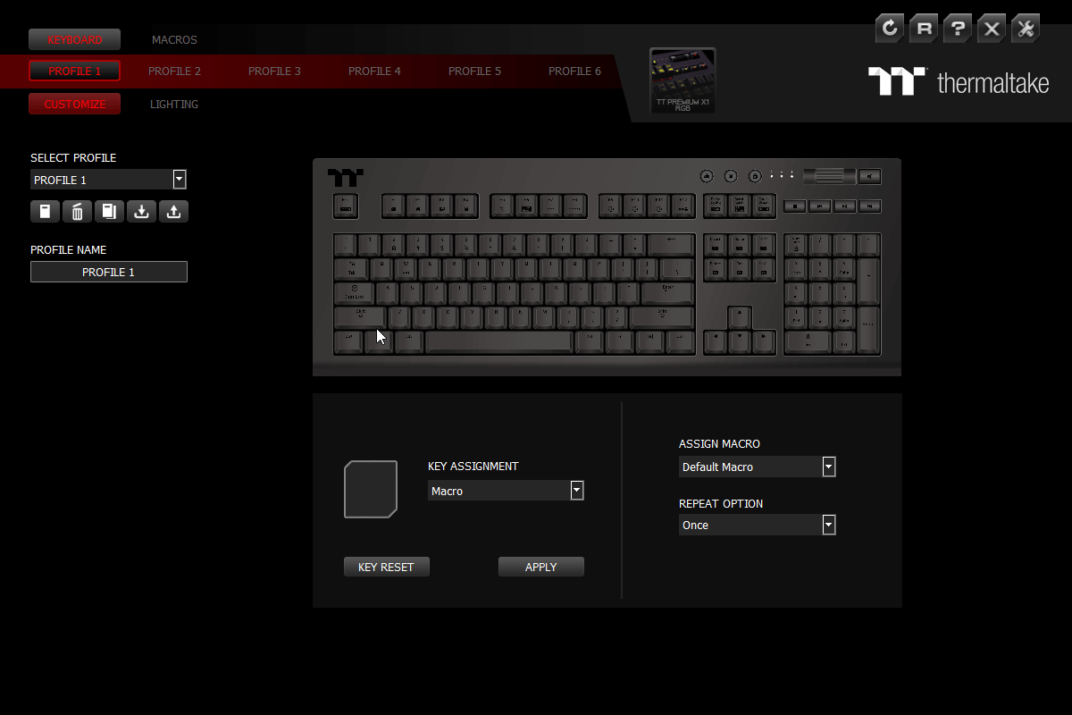 The software has an extensive level of settings to tweak to get your keyboard working and looking to your liking. However, I think Thermaltake need to hire some new graphic designers as both the X1 RGB software this keyboard uses and the TT RGB plus software used by the fan hubs looks dated. Some of the UI is just poor as the main colours used for the UI is black, red and dark grey, and it can be a little difficult to read.