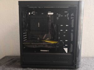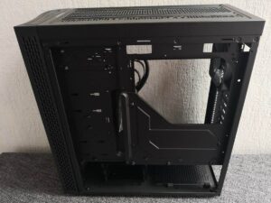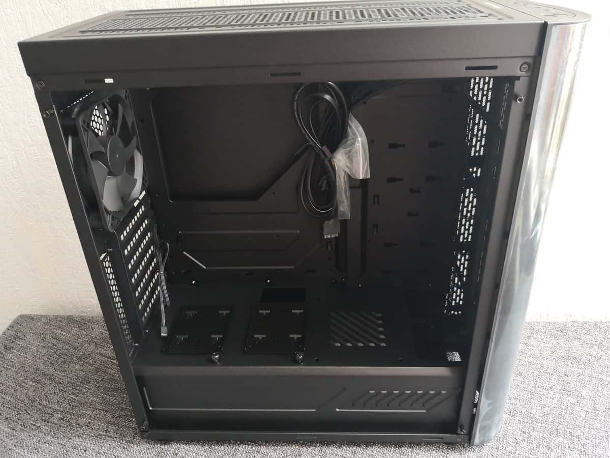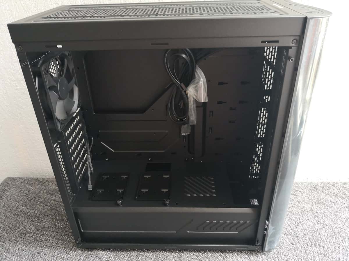 The case I use on a day to day basis is the Fractal Design R5, and most of my comparisons will be made against this. However, it is worth noting that it is a much more expensive case, and a different design aesthetic.Initial impressions of the case are positive, its an all-black affair like most PC cases but its curved shaped front gives it a little bit of character making it look marginally less generic than my current case.At only 6.95KG it is quite light compared to what I am used to, but the overall build quality appears to be good. During my basic inspection, I didn’t pick up any noticeable issues with the build. The metal side panel is quite thin and reminiscent of the panels of cheap cases I have used in the past, but this is an affordable option, so to be expected.The top dust filter is attached loosely with nothing holding it down, it fits flush with the case so won’t move around when in place but at the same time it is quite easy to knock it out of place. It does mean cleaning it is extremely simple though.There is only one 3-pin fan included with the case, which is not exactly ideal for most builds, but it presumably helps keep costs low and offers you the option to add your preferred fan. For me, I prefer this option, I would prefer to buy my own low noise PWM fans than be supplied 3 loud 3-pin fans. An Arctic F-12 PWM only costs around £5 though my go-to fan is usually the Nanoxia Deep Silence Fan as an affordable option compared to Noctua.The case itself has some impressive cooling options for both fan-based and liquid cooling. The front and top panels can support radiators up to 360mm, and there are fan mounts for either 3x120mm or 2x140mm. The rear exhaust can handle fans up to 120mm. You then have the option for a CPU cooler with maximum height 160mm.While this is only a mid-tower case, so quite a bit smaller than my Antec, it feels quite spacious. The main compartment seems smaller, but there appears to be a lot more room for cable routing on the underside.There are some flexible storage mounting options, with 2×2.5mm trays that can be located on PSU shroud or you can move them to the back of the main tray, then a hard drive cage located behind the PSU, which can be removed and relocated.The PSU shroud is fixed into place, so a little bit of thought is required when installing the PSU.The tempered glass panel is held in place with 4 thumb screws and protected by some rubber grommets.The accessories you get are basic but adequate. There are plenty of screws that should accommodate most builds as well as a few zip ties to tidy your cables.Build Process & Performance.