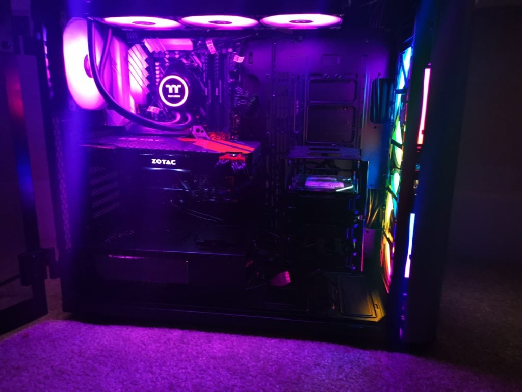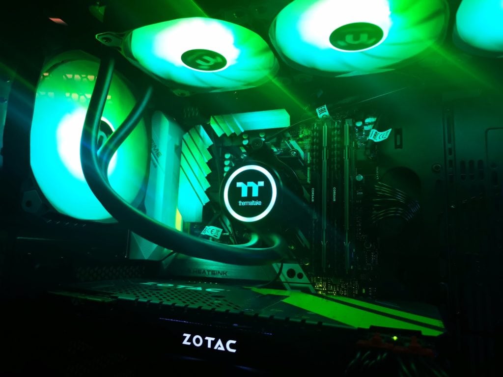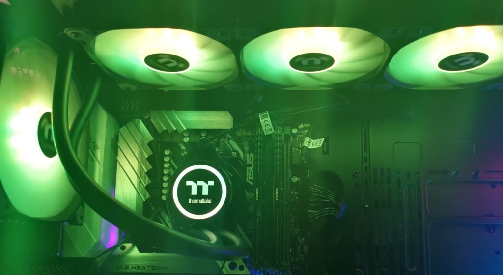 I was unable to use the motherboard to control the RGB elements, but the manual controls work well and with a little fiddling around I managed to get a similar colour scheme to my front fans. The ThermalTake logo will also match the fan colours and the overall effect is impressive if you are a fan of RGB. ThermalTake appears to be making themselves the market leader with RGB products, and if this is something you like, then their products should always be on your shortlist.