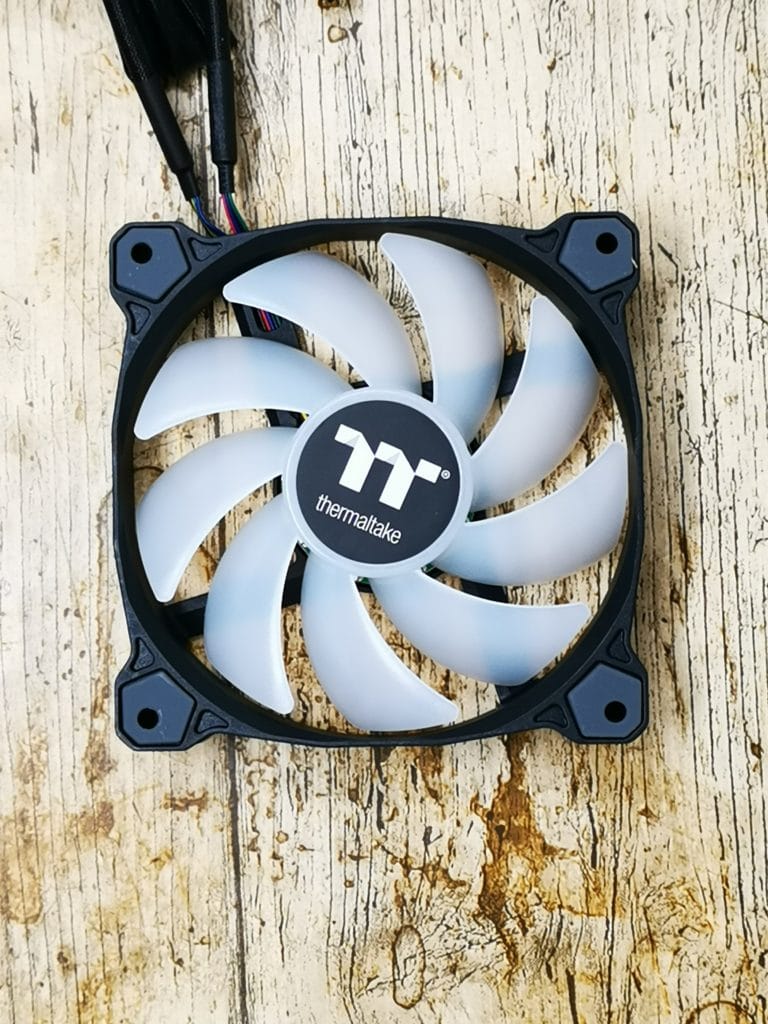 With this model, Thermaltake has dropped the Riing fans which use USB headers and a hub for control and replace them with something more traditional in the form of the Pure 12 ARGB Sync radiator fans. These are the same as the Pure 14 ARGB Sync I have previously reviewed albeit in 120mm format. These fans are PWM fans with a 4-pin motherboard header plus an additional cable for the ARGB control.