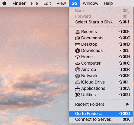 Step 7: Click Go at the menu bar where Apple logo is and select Go to Folder.