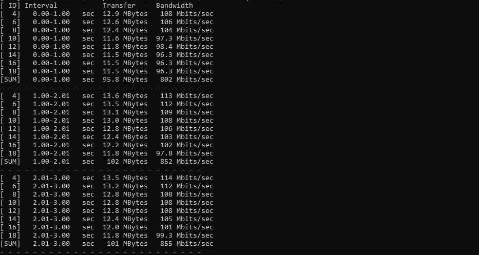 For iPerf3, to get the best speeds possible I run the default test but with 8 parallel requests. I then take the sum of the results and average them out. Running a single connection typically yields underwhelming results of around 440 Mbps (for most access points).