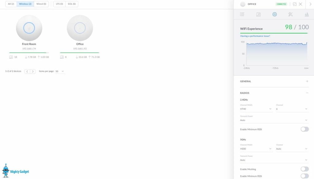 I won’t go over the Unifi system too much. In short, it is excellent and easy to use. You can optionally leave these to auto optimise by themselves or manually tweak things until you are happy. I have experimented with various options to try and improve performance.