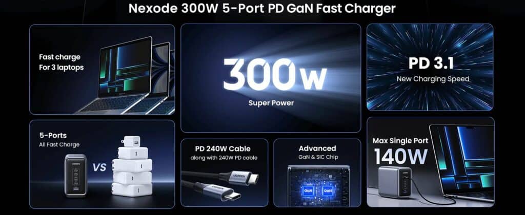 Ugreen Nexode 300W 5-Port PD GaN Desktop Charger Review