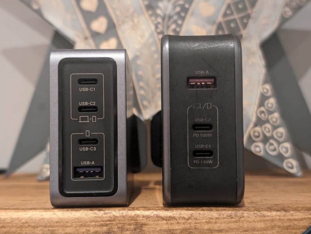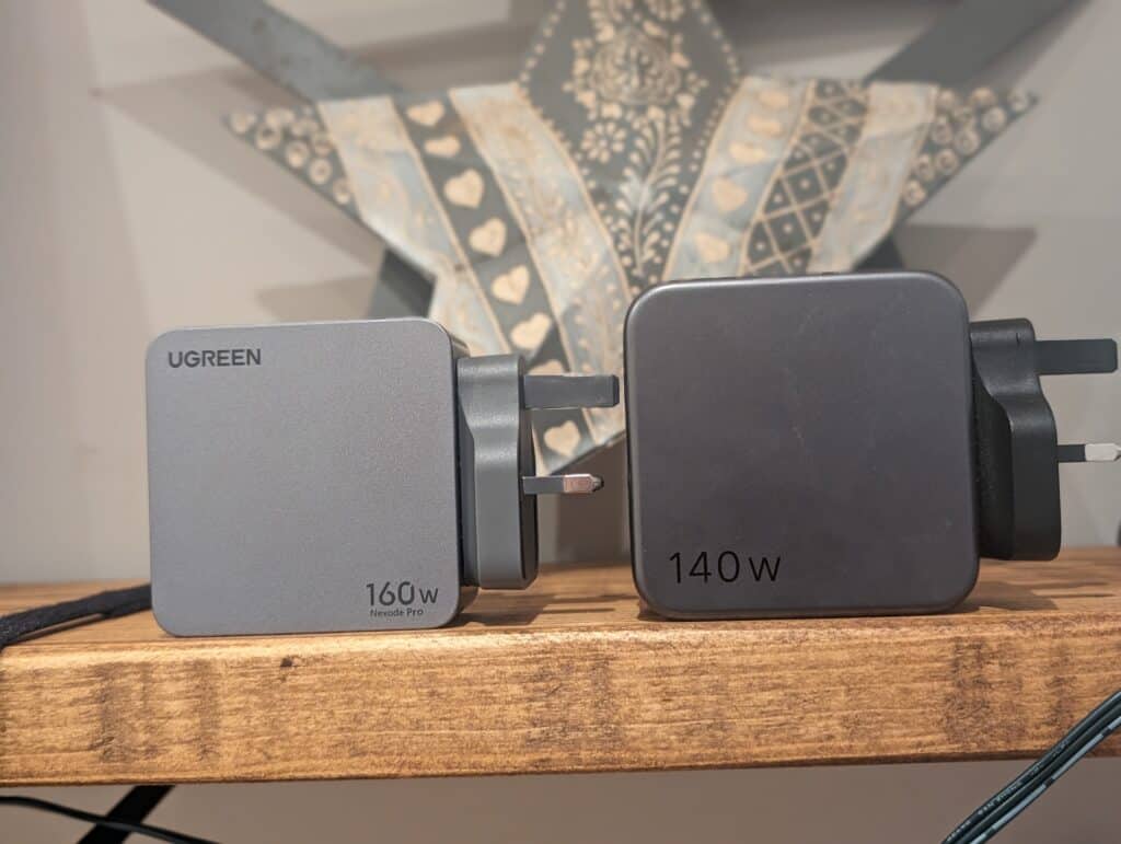 I don’t have a 100W Nexode to compare for size differences, but you can see that the 140W Nexode is clearly larger than the 160W Nexode Pro and Ugreen have managed to squeeze in and additional USB-C port.