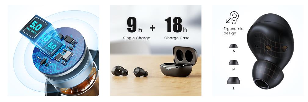 There are a few notable specs for a pair of earphones at this price. The Qualcomm QCC3020 chipset allows the use of the Qualcomm aptX giving you superior audio quality and lower latency vs SBC but not quite as good as AAC if you use an iPhone.