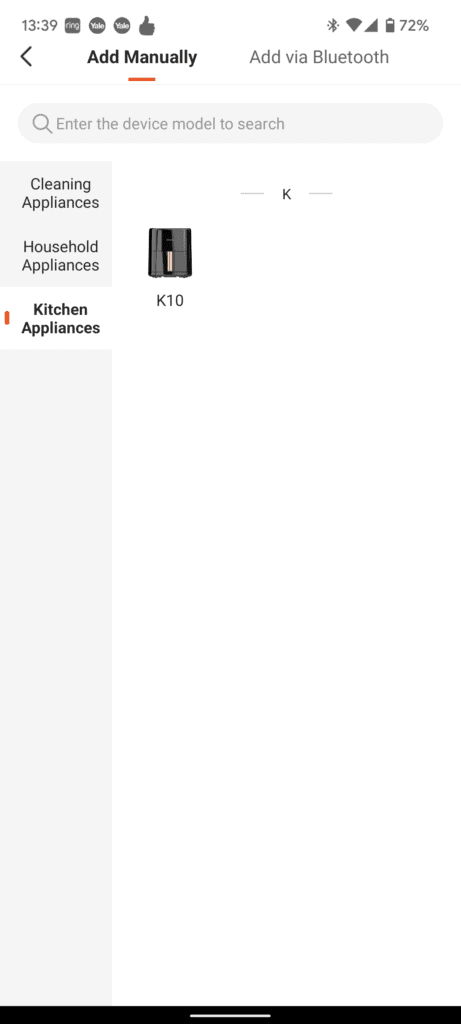 You will then need to select your device. Unlike Tuya, the range of options is massively slimmed down, and you have the model names for the Ultenic brand.