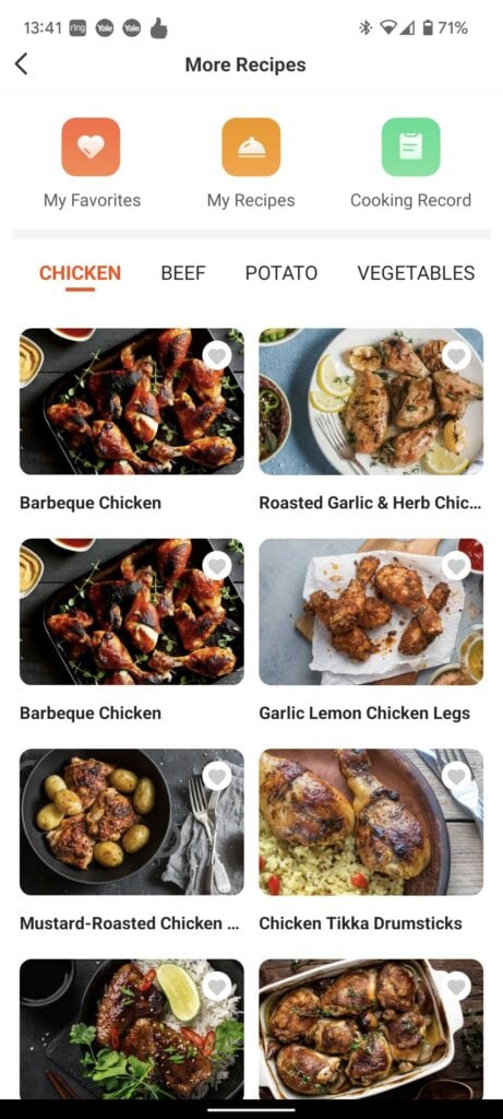 Under the more recipes option, you have a wide range of recipes that then have heat and times linked to it, allowing you to set the air fryer automatically.