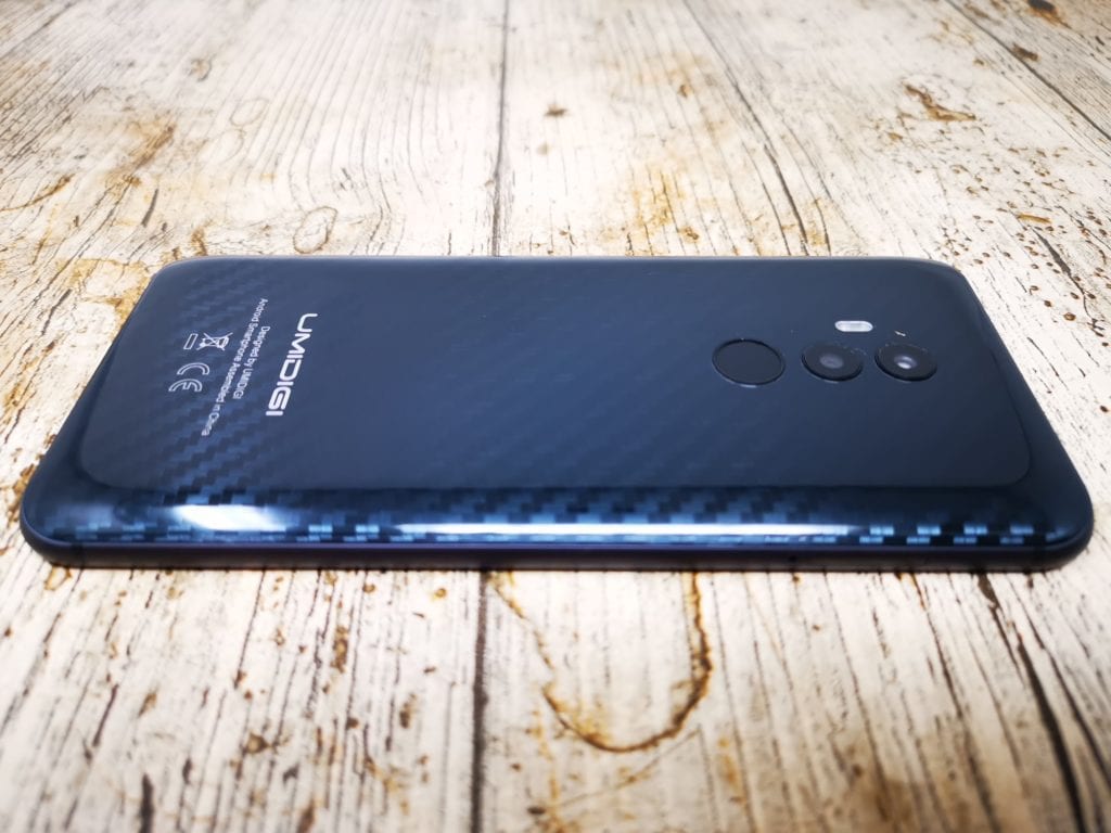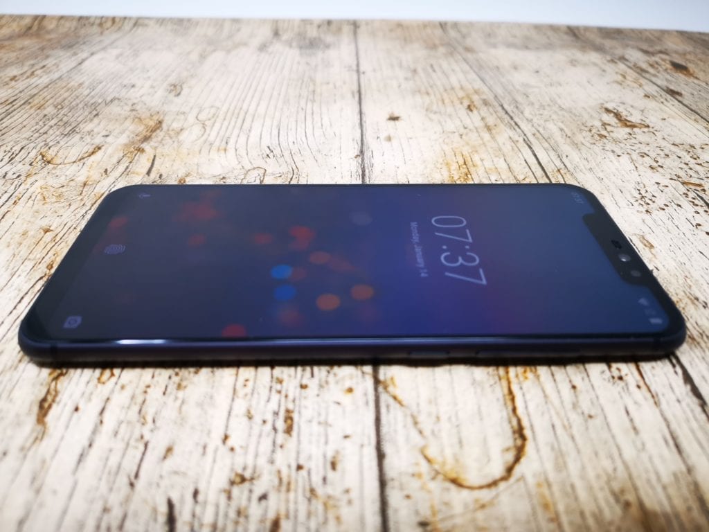 The phone itself looks and feels great with its stand out feature being the 90% screen to body ratio of the screen and its notch, these things that are normally found on much more expensive phones. The rear of the phone is a glossy plastic with a carbon fibre type design to it. While the plastic shell may be less desirable than other materials I have no issue with it, it makes the phone a little lighter and it is less likely to smash than glass. The twin cameras on the rear have a small bump to them, with the fingerprint scanner being slightly recessed and sitting slightly below them.