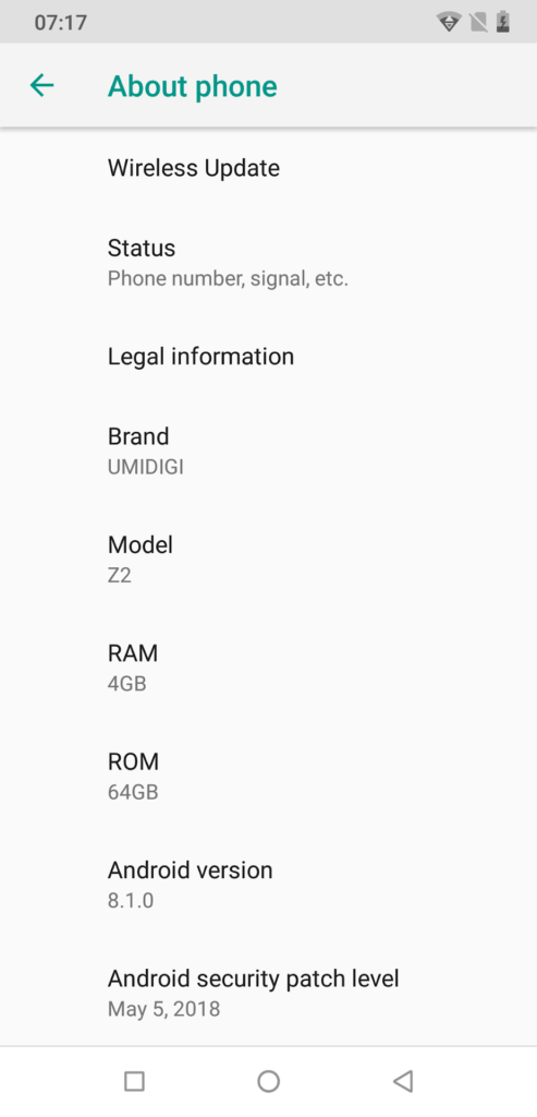 This is not an Android One based device, but Umidigi has effectively installed pure Android on it, I can’t find any bloatware like you see on other devices such as Alcatel. Since receiving the phone, I have had three security patches, so it is promising that they are updating the phone. However, it is still running Android 8.1 and if or when Android 9 Pie gets released for it is unknown.