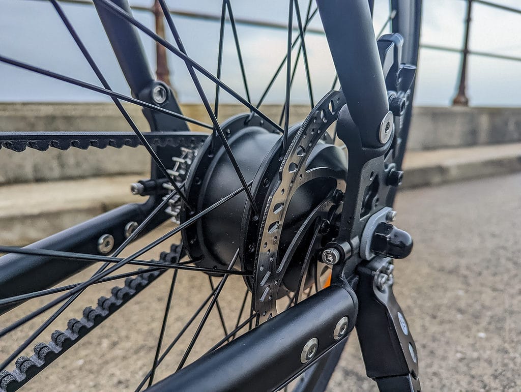 Vanpowers claims this provides superior structural integrity due to the welds on a bike being the weak spot. It also allows Vanpowers to pack up the bike into a much smaller and easier-to-ship box, which I suspect is the main reason why they opted for this frame design. However, the frame design also allows the bike to work with a belt, as you need a split in the frame to fit the belt.