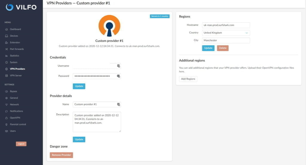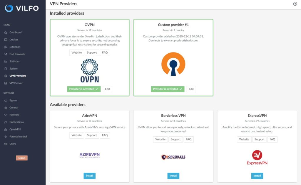 For testing, I used both SurfShark and an OPVPN which Vilfo kindly provided me temporarily.