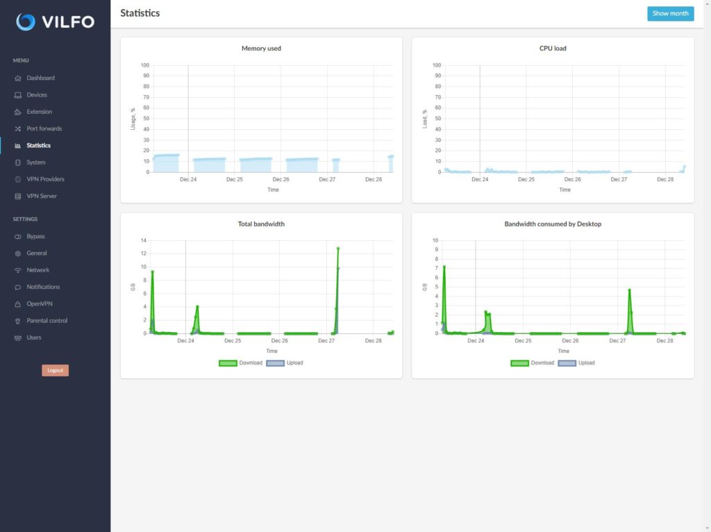 Vilfo has powerful hardware tailor-made to speed up VPN connections. This allows you to stay secure online while still reaching speeds up to 600 Mbit/s fully encrypted.