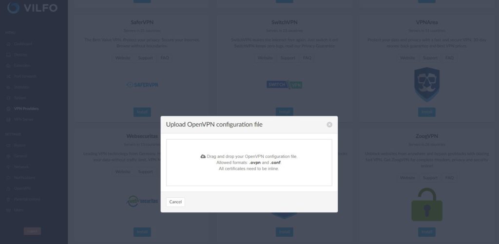 There is an extensive list of VPN providers that are built into this router. Using these reduces set up time, and they will import all the different endpoints automatically for you.