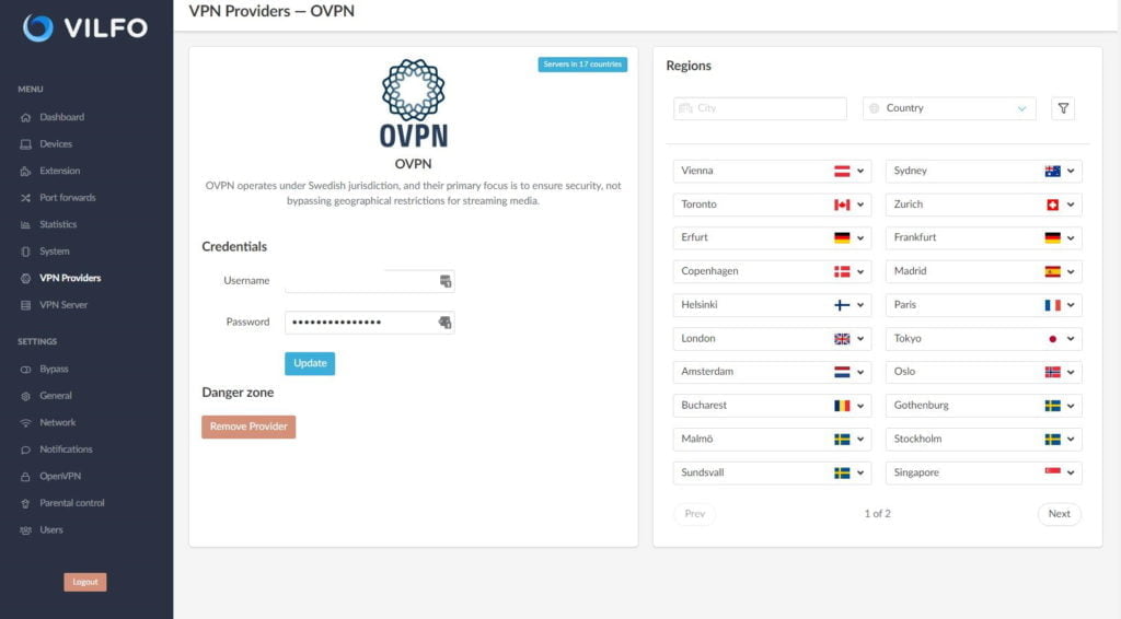 Vilfo is an offshoot from OVPN, started by them, but independent from them. Originally things started with the development of OVPNbox, which was a router based on pfSense.