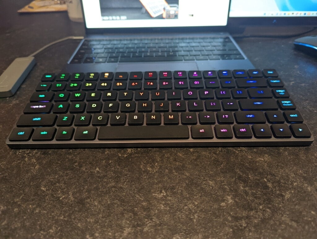 You can use this in wired mode or Bluetooth, I favoured the wired connection as it is not much of an inconvenience having a wire from keyboard to laptop.
