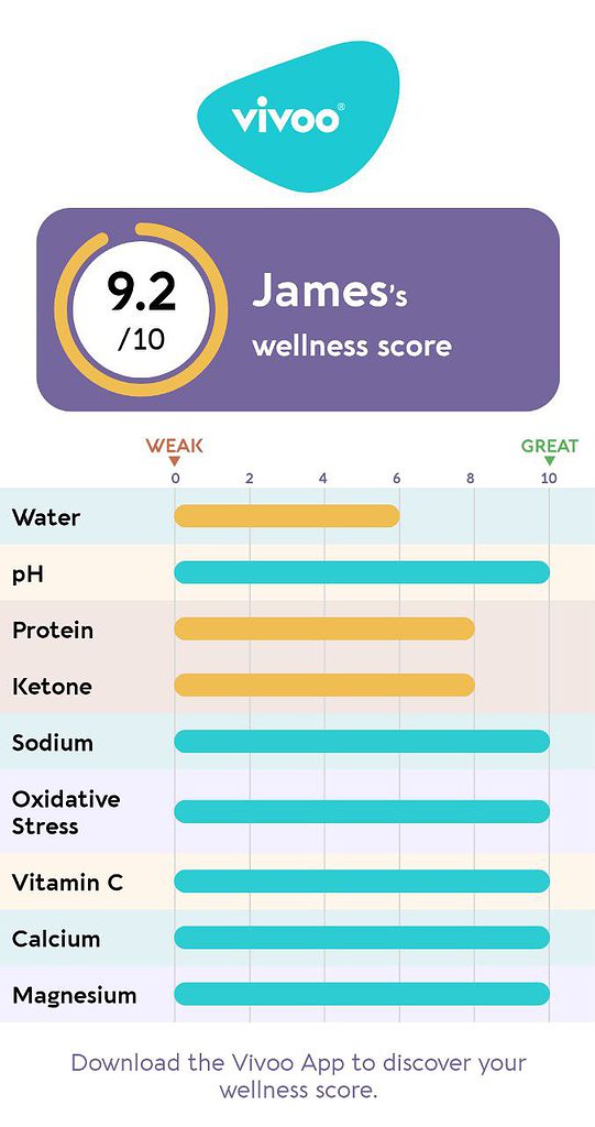With Vivoo, you can track your body’s wellness based on 9 wellness parameters: Vitamin C, Magnesium, Sodium, Water, Calcium, pH, Hydration, Ketones, and Proteins.
