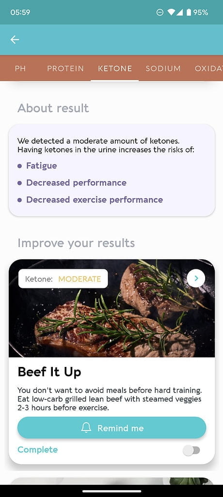 The app will give you an indication of ketones in your urine. Traditionally you may not want this, but with the popularity of keto diets, this could provide useful feedback on if you are in ketogenesis. I have never done a keto diet, but I’d assume if you are monitoring ketones, this is done on a regular basis, so I think the Vivoo system may prove to be prohibitively expensive for this function.