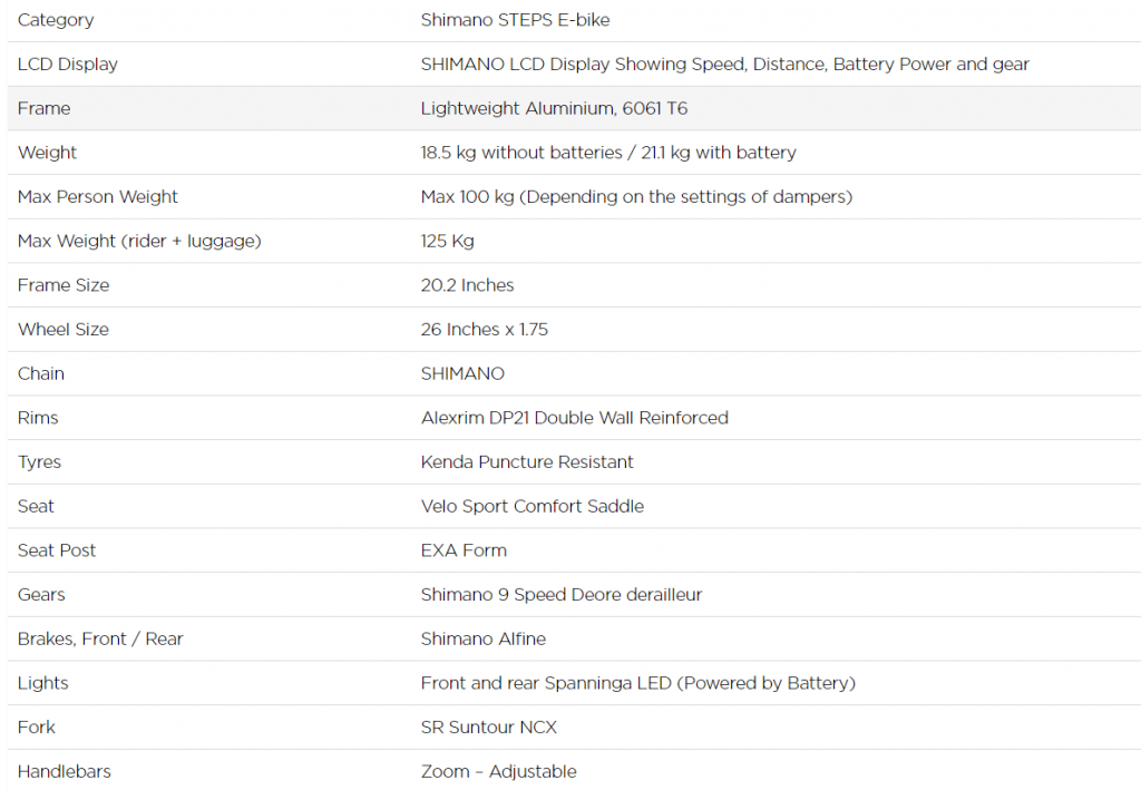 The frame is 20.2 inches and it uses the Shimano STEPS motor which apparently is the most advanced crank driven electric motor on the market today. This system reads information about how you are riding and delivers power appropriately in real-time, resulting in a ride that feels completely natural. The motor will read information such as the torque exerted on the cranks when the user pedals, the gradient and speed. It will then calculate how much power the motor should produce to supplement the rider’s pedalling.