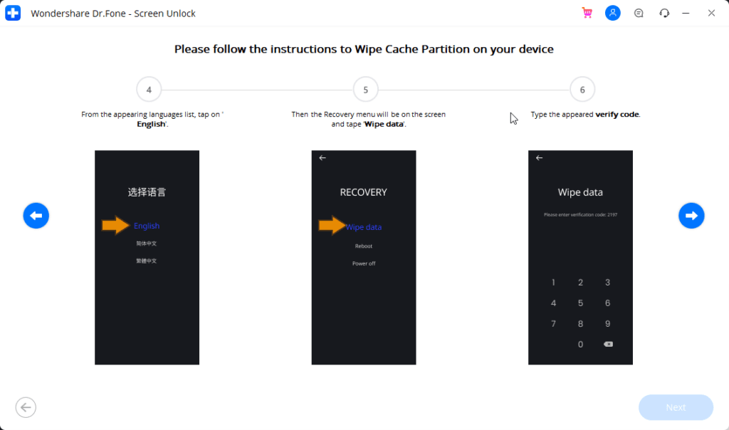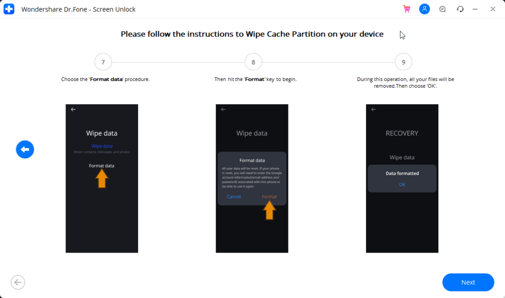 When selecting the 100% remove screen lock function, you will be asked which brand of phone you want to unlock and then be guided through the factory reset process, which is completed from the recovery mode.