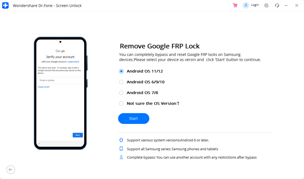 Wondershare Dr.Fone has a function to remove the Google FRP lock which exists on Samsung phones and tablets. It also has a tool to remove the screen lock without any data loss on a handful of older devices.