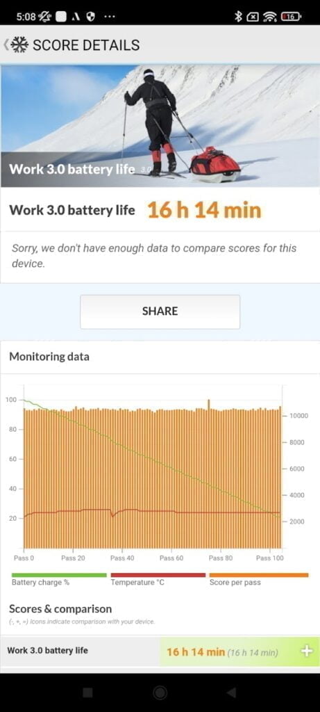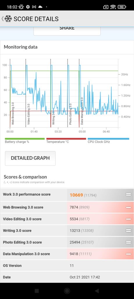 This then scores an incredible 16 hours 14 minutes on the PC Mark battery test, that’s five hours longer than the Honor 50 I just reviewed and over 2 hours longer than the OnePlus Nord 2. This, therefore, makes it one of the best performing phones I have used this year.