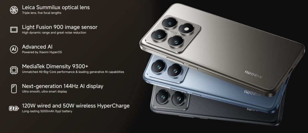 - Xiaomi 14T Pro & Xiaomi 14 Pro: Android 14, HyperOS.