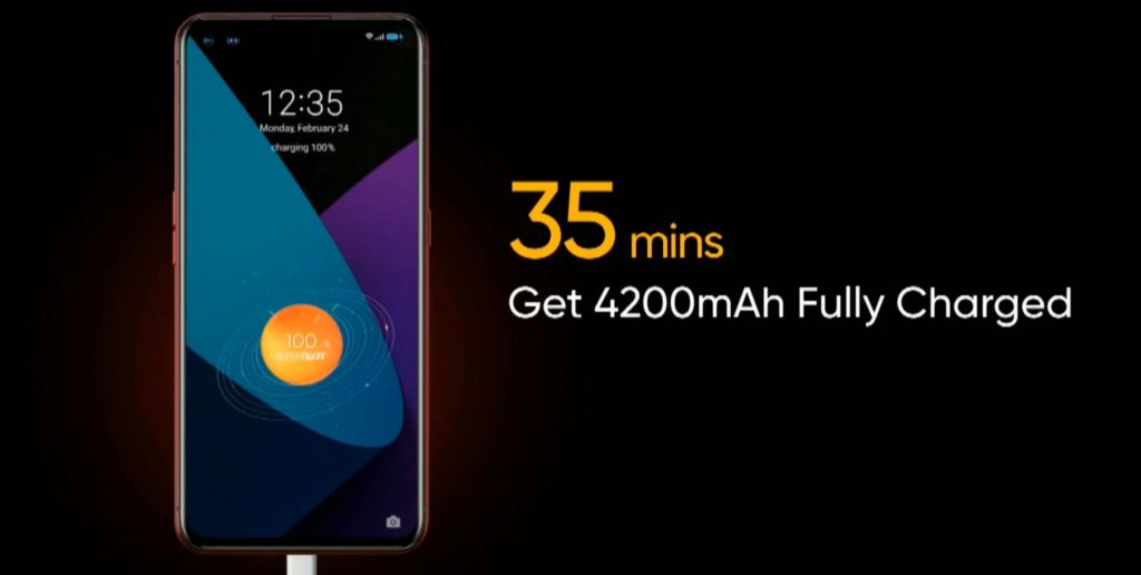 The Realme X50 Pro has a 4200 mAh battery with 65W SuperDart Flash Charge
