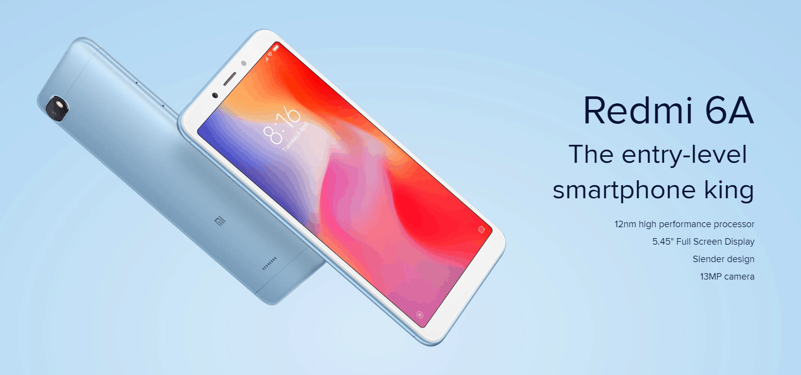 The Xiaomi Redmi 6A offers a 13-MP primary camera with an f/2.2 aperture and a 5-MP front camera, also with an f/2.2 aperture.