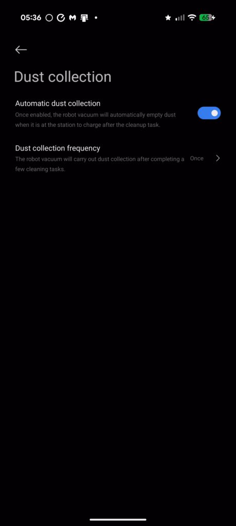 For general vacuuming, the Xiaomi Robot Vacuum 5 performs well. On hard floors (I have laminate in my kitchen and toilet), it picks up dust, crumbs, pet hair, and other typical household debris without issue. The 20000Pa suction is more than adequate – I’d even say it’s overkill for hard floors, and the standard mode is perfectly sufficient.