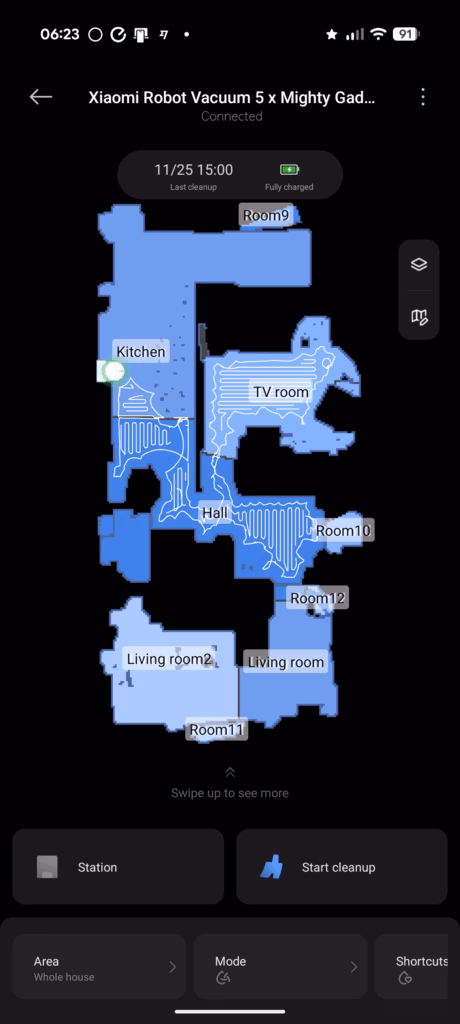 The initial setup through the Xiaomi Home app is straightforward. Download the app, create an account if you don’t have one, and follow the prompts to connect the vacuum to your Wi-Fi network. The whole process took about 5 minutes. The app walks you through the first mapping run, where the robot explores your home and creates a floor plan.