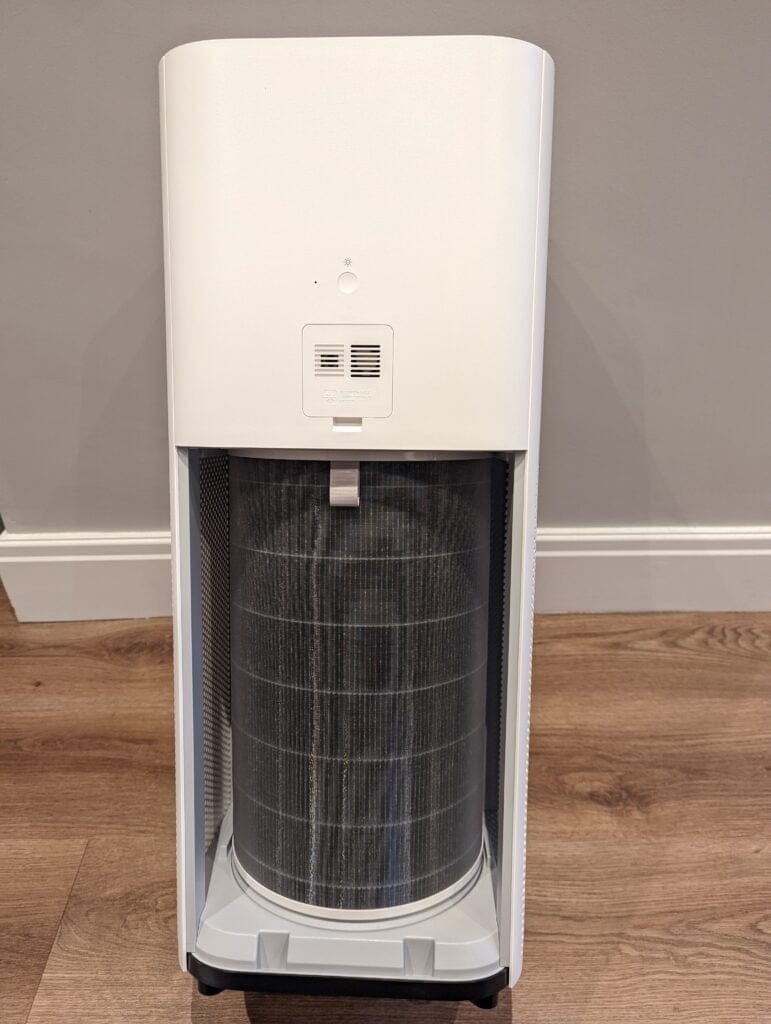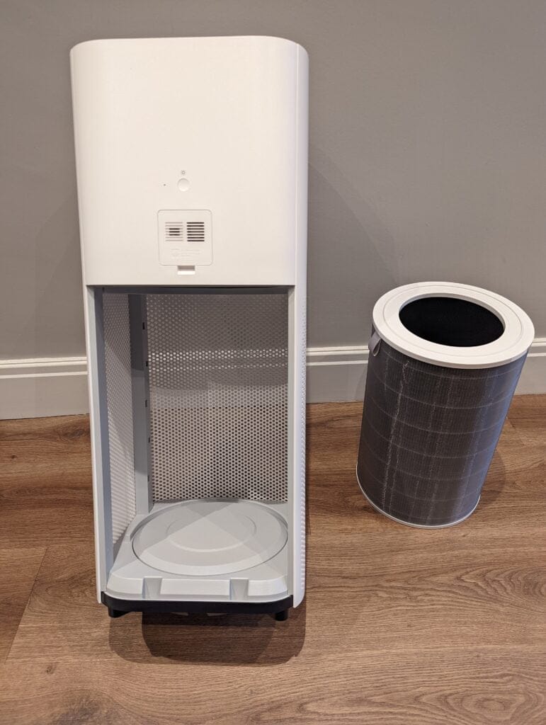 It’s a surprisingly light air purifier, the bulk of it is just the tubular HEPA filter that sits in the bottom two-thirds of the unit. You then have a fan, and I suspect all the other electronics take up a tiny fraction of the space.