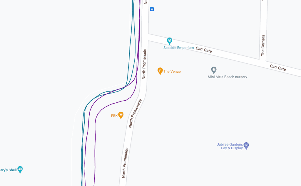 GPS accuracy is good enough. On the few walks and runs I have done, the lines are a bit wobbly, but they don’t stray too far off.