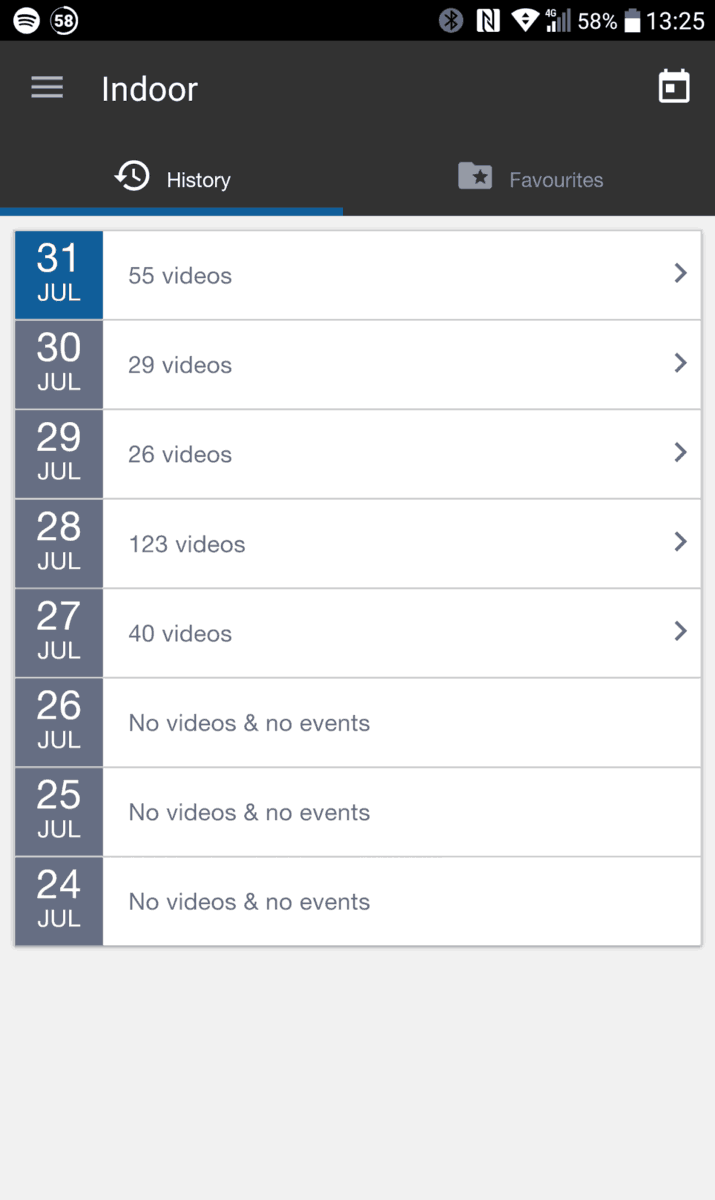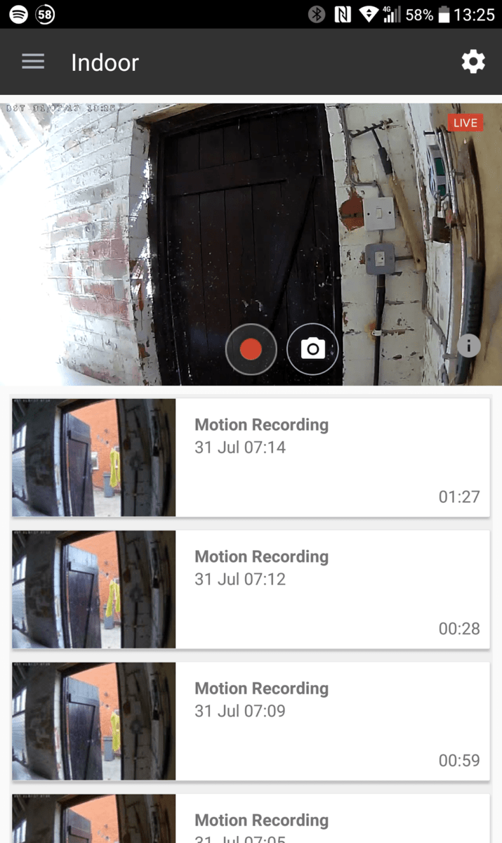 When everything is set up you will be shown a link to the camera, which you can then select to see its live view, and below that is a list of the clips it has recorded. The app seems a little slow and clunky compared with some competitors but it works fine.