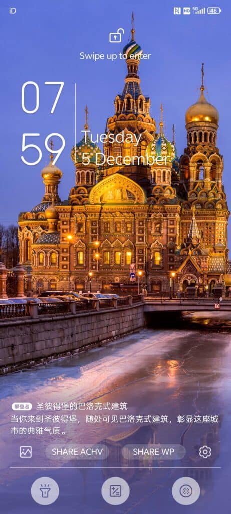 The wallpapers all have some Chinese text on them. I thought this was just a credit, but it seems to have something to do with the today’s wallpapers feature. You can manually download and assign wallpapers, setting them for the lock and home screen, and the text is removed.
