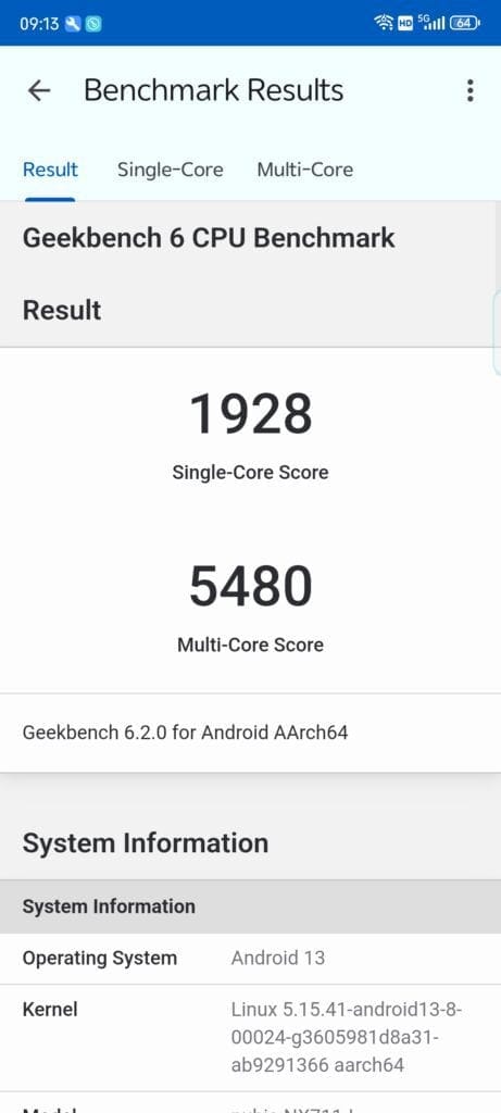 Moving on to Geekbench 6, the phone achieves about the same as other phones with 1928/5480.