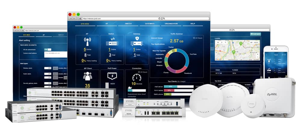 - Centralized management without the need to install software or a controller via Zyxel Nebula