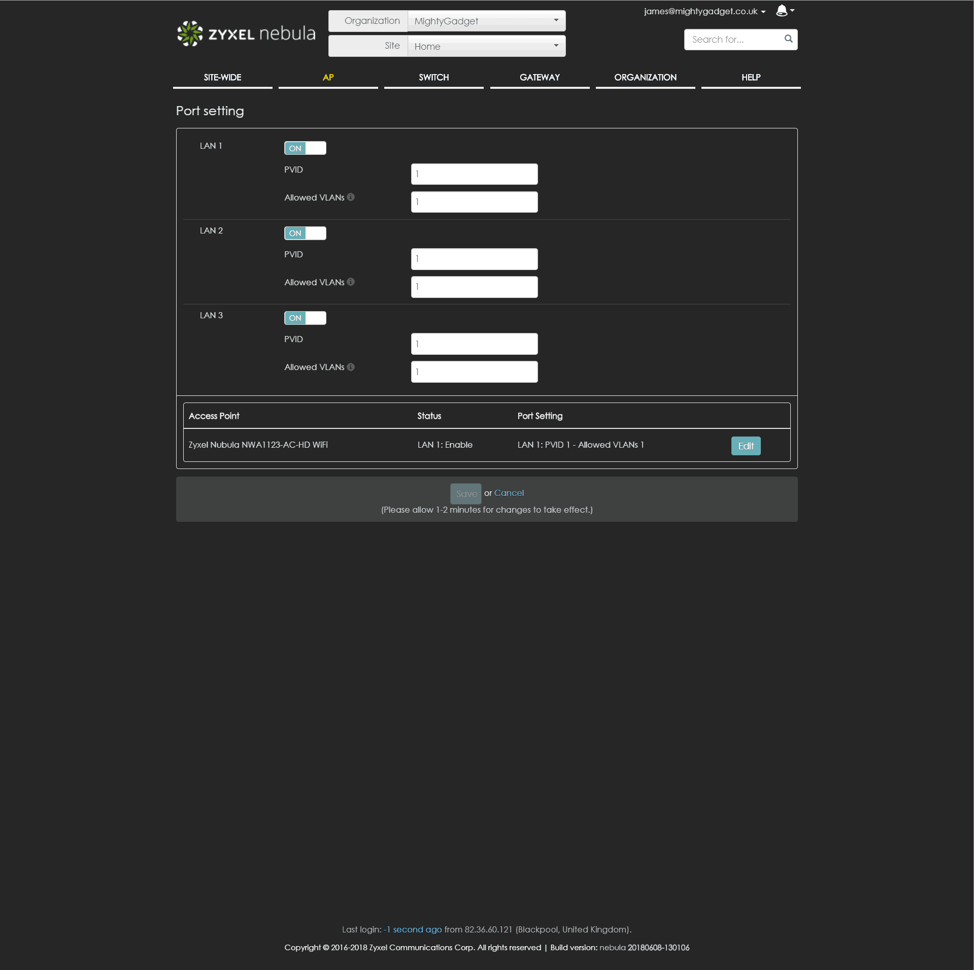 With the access point, this is a hybrid device, so you can use it independently from the Nebula system if you wish. I logged into the built-in web management portal when I first used it, it is good, it offers everything you could want from an access point. For a commercial environment, it has some nice features such as the option to have several SSIDs as well as guest networks that can use captive portals or sign on with options such as Facebook.When the AP is in the Nebula system you still have access to it via the usual local web portal, but with very limited settings.As I was most interested in the Nebula management, my testing didn’t go very far with the normal web interface.